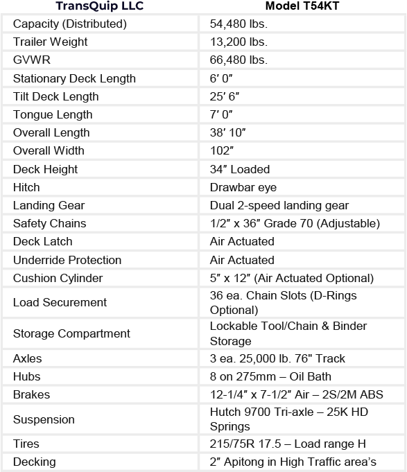Model T54KT Model T54KT Whether it’s transporting equipment, materials, or anything in between, our trailers are built to meet the unique needs of these critical sectors.